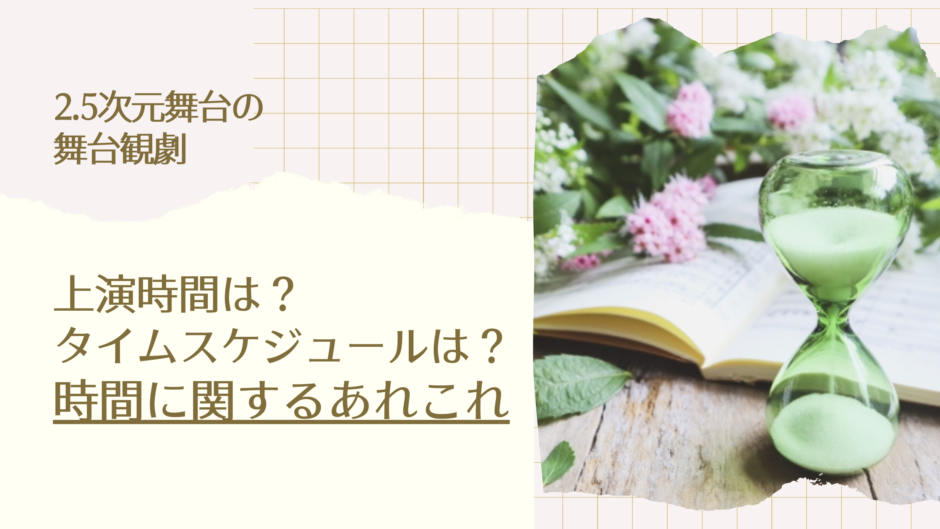 2.5次元舞台の場合、上演時間は短いもので1時間半、長いもので3時間超えのものがあります。
